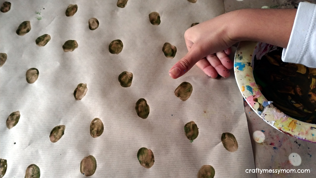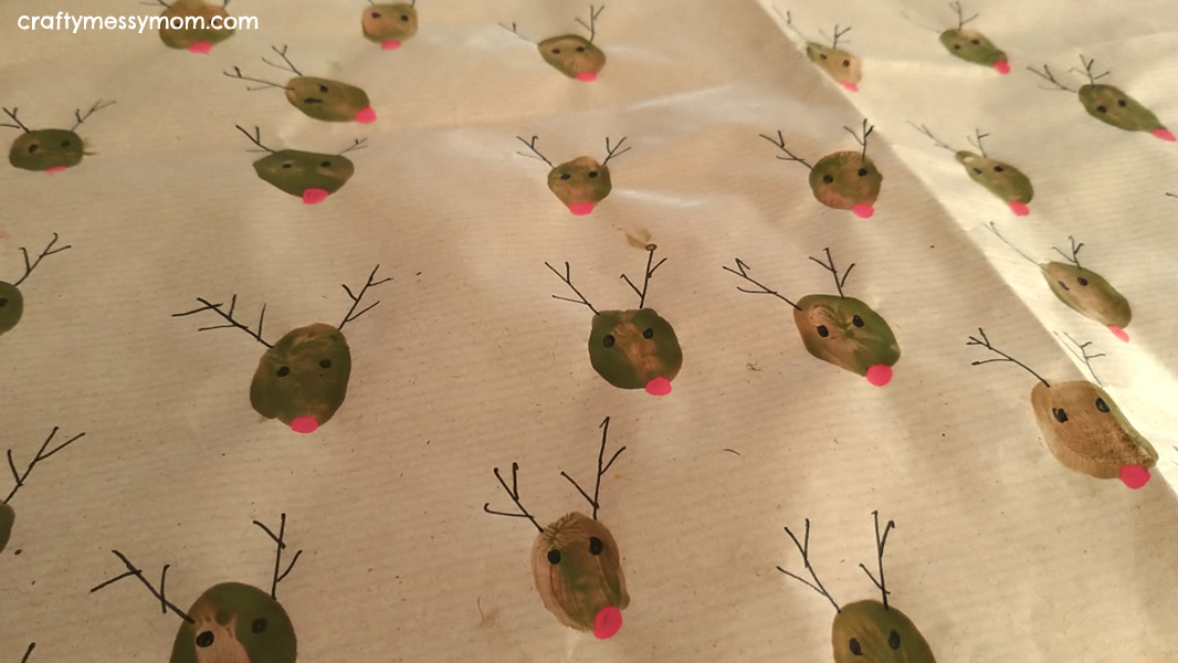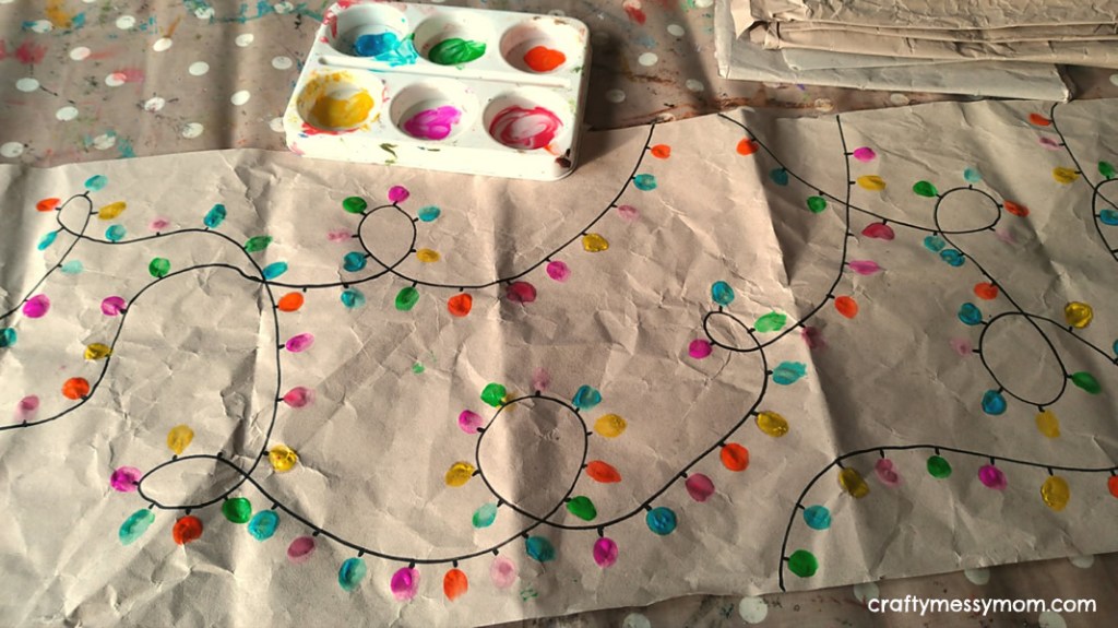 Another art technique popular among kids: finger printing! We used it to make lovely reindeers and colourful Christmas lights as motifs of our wrapping paper.