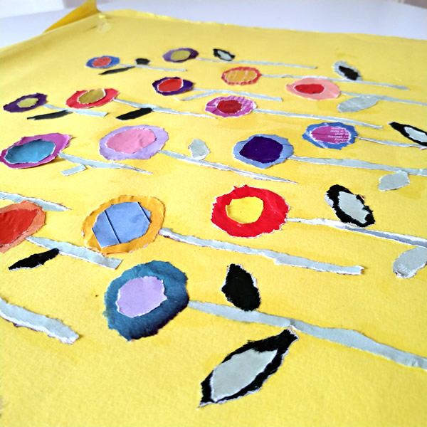 Other times, my passion for torn paper collages turned into easy child-lead craft-activities, such as a torn paper collage rainbow and a multicoloured field of flowers both from recycled paper, old magazines and catalogues.